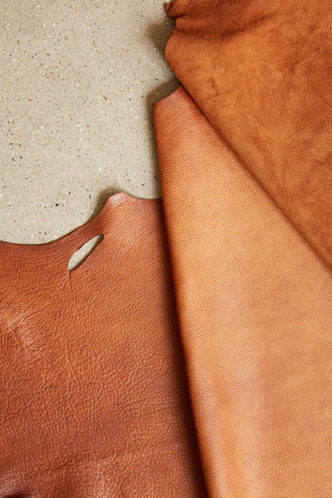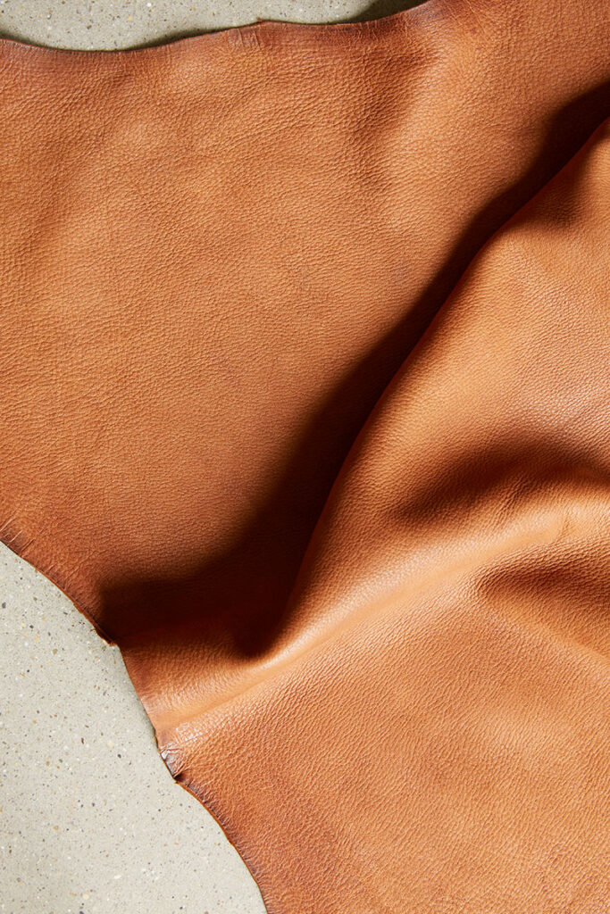 Wir stellen eine Vielzahl von Ledern aus den Fellen verschiedener Tierarten her und bieten eine breite Palette an Optionen, die auf Anfrage verfügbar sind. Unsere Ledersorten sind vollnarbig, da wir bewusst auf eine Beschichtung verzichten. Dadurch bleiben die natürlichen Merkmale wie Falten, Narben und kleine Makel sichtbar, die wir als Zeichen der Qualität eines plastikfreien Leders ansehen. Auf Wunsch kann jedoch auch eine Beschichtung hinzugefügt werden, um spezifische Anforderungen zu erfüllen. Wir führen eine Vielzahl an unterschiedlichen Ledern in verschiedenen Farben und Materialstärken, die wir bereits ab einem Stück verkaufen. Dadurch ermöglichen wir auch Studentinnen und anderen Startups den Zugang zu diesem transparenten und nachhaltigen Werkstoff. Egal, ob du Bekleidung (wie Jacken, Hosen und Röcke), Schuhe (Obermaterial, Futter, Zwischen- und Innensohlen, Orthopädie), Taschen, Accessoires (wie Gürtel, Schmuck, Uhrenarmbänder) oder Möbel anfertigst – wir haben das ideale Leder für dich.